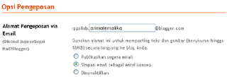 3. At the option of posting input the email address which you wish, this email is a subdomain of the Google Email,, you can see in the image. In the picture above it is rppsilab google mail [at] gmail.com with the email I fill sub arimatematika. So his email is rppsilab.arimatematika [at] blogger.com. Please note at the bottom of the image above check "save the email as an entry concept" for our trim before published. [This is what I mean by Semi-Generated Content For Blogspot, articles entered automatically, but will still need to edit manually so neat when we show in the posting.